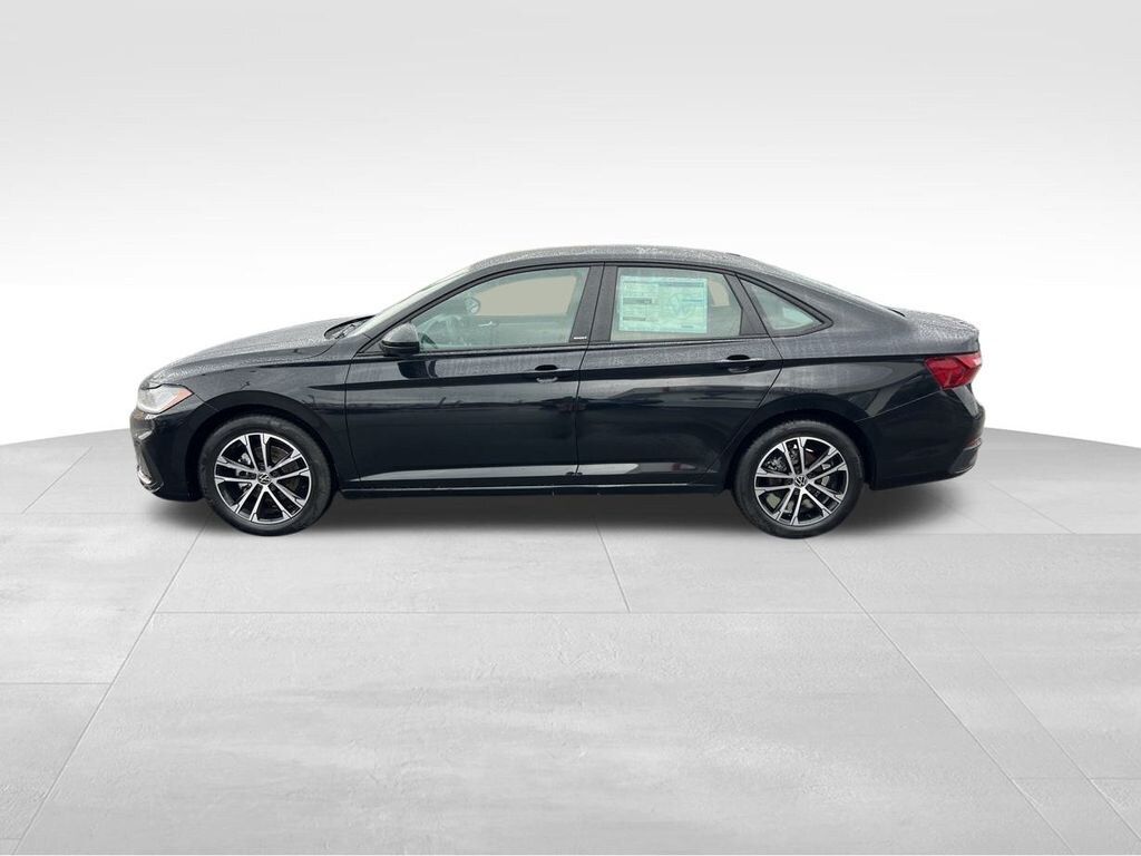 Deep Black Pearl 2025 Volkswagen Jetta 1.5T Sport FWD 8-Speed Automatic with Tiptronic 1.5L I-4 DI DOHC Turbocharged Titan Black w/Cloth Seat Trim, Auto-Dimming Rearview Mirror w/HomeLink Connect, Heavy Duty Trunk Liner w/VW CarGo Blocks, Roadside Assistance Kit, Rubber Monster Mats Kit (Set of 4), VW Care.