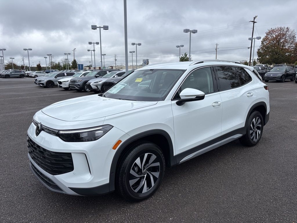 Pure White 2026 Volkswagen Tiguan 2.0T S AWD 8-Speed Automatic 2.0L TSI DOHC AWD, ABS brakes, Active Cruise Control, Alloy wheels, Compass, Electronic Stability Control, Emergency communication system, Front dual zone A/C, Heated door mirrors, Heated Front Seats, Heated front seats, Illuminated entry, Low tire pressure warning, Power steering, Power windows, Remote keyless entry, Steering wheel mounted audio controls, Traction control.