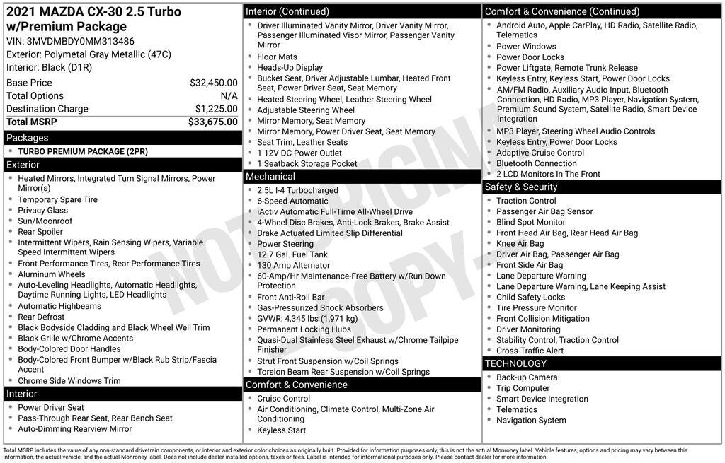 Used 2021 MazdaMazda CX-30 Turbo Premium Package