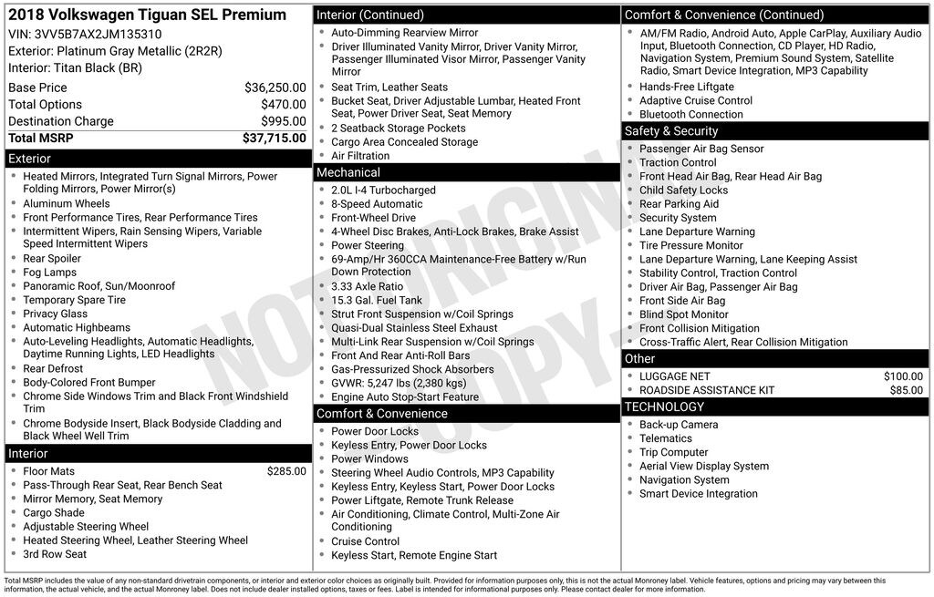 2018 Volkswagen Tiguan 2.0T SEL Premium