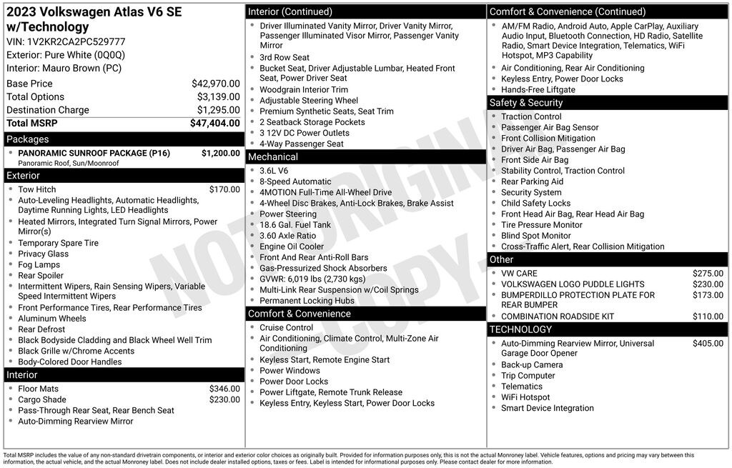 2023 Volkswagen Atlas 3.6L V6 SE w/Technology