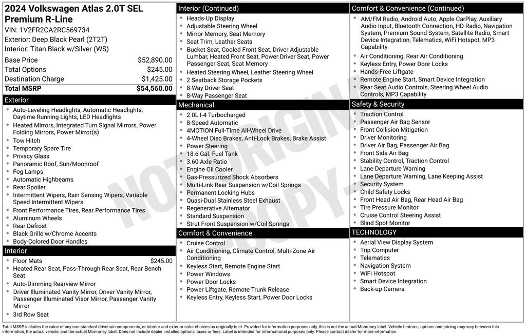 (Warning- a little long) We were looking for a roomy 3 row SUV with easy access to all 3 rows. After a ton of research and multiple test drives of the possible options, we settled on the VW Atlas, SEL Premium. We’ve owned our Atlas for a little over a month now. We’ve taken it on a couple of long trips (1000+ miles), so we’ve seen enough to write a decent review. The Atlas was one of 4 finalists for us. The others were the GMC Acadia, the Chevy Traverse, and the Infiniti QX60. These were our finalists for one primary reason- access to the rear seat with car seats installed in the middle row seats (without climbing into the middle row, and going through the middle space between the captain’s chairs). No other 3 row SUVs had this option, although I understand some will have it for the 2020 model year. Because we only had 4 models to look at, we focused all our attention on these models. Likes: Third row access is incredibly easy in the Atlas. By pulling up on the release on the top of the seat, the entire seat tips forward, and then slides forward, leaving a large opening to access the rear seat, and allowing us to buckle our 4 year old into that seat very easily, even while standing outside the car. This middle row seat movement can be performed with a car seat installed in the middle row seats, a maneuver that very few 3 row SUVs are capable of. The Infiniti QX-60 has a similar setup, and it is just as easy to use. The Acadia and Traverse also have this option, but during our test drives, we found the mechanism to be incredibly difficult to use. The salesman said it was probably just stiff, but it was almost impossible for my wife to get the seat to move, and it happened in both of those models. Also, the GMC and Chevy only have this capability on the passenger side, which is highly annoying. The interior of the Atlas is HUGE, the door openings are very wide to provide easy access, and it is very comfortable. The seats in the Atlas were by far the most comfortable of any vehicle we tested. When I say that, I mean ALL of the seats, to include the 2nd and 3rd rows, and the 3rd row is actually usable by adults. I am 5’10”, and I was very comfortable back there. I would not say the same of the other three vehicles tested. Also, the middle row seats of the Chevy and GMC were very uncomfortable. The had a weird shape, with a weird forward “hump” that hit right between the shoulder blades. I’m sure this has something to do with crash safety or something like that, but those seats were just extremely uncomfortable. Our Atlas is equipped with a panoramic sunroof, which is pretty cool. It also has a power sunshade for the sunroof. The Chevy and GMC have a very cheap, manual cover. It is spring-loaded, and if you accidentally let go of it, it will snap back like a window shade. At this price level, it should be a power sunshade. While we are on the topic of sunshades: the 2nd row windows in the Atlas have built-in sunshades, which is ingenious! I wish all cars had this feature. The Atlas has an infotainment system that is easy to use and intuitive, and it allows for swiping and pinch zooming. Apple Car Play is awesome! Surprisingly, some manufacturers have not integrated this feature at this time. The digital instrument panel has a very nice, modern look, and it offers 5 or 6 different views. One of the really cool things about the Atlas- you can display the nav map in the middle of the instrument panel. Additionally, you can make the map bigger and the gauges smaller, which allows you to see more map detail- a really nice option. The car even has an altimeter, which is really cool to me (I’m a pilot by trade). Not so much for my wife… The Atlas allows for 4 customizable driver settings. It also has an overhead view camera, which allows you to see a birds-eye view of the vehicle- very handy to ensure you are actually centered in that parking spot! (this is only offered in the highest trim level) The car also has a traditional shift lever. This appeals to me, because I’m old school. The Atlas has a very nice exterior, and it looks great from both the front and the back. The LED headlights are really nice, and much brighter than standard headlights. Also, the daytime running lights look really cool (I noticed that when another Atlas pulled up behind us on the freeway). It also has a small turn radius, which makes maneuvering in tight spaces much easier. The Atlas has a few other really nice options- adaptive cruise control, auto-dimming headlights, auto-wipers, and an auto-park feature (highest trim level only) for parallel and back in perpendicular parking. The cruise control also has an option to speed up or slow down in increments of 5 mph in addition to the more standard 1 mph increment, which is handy. It also has a feature that turns on the fog light on the side of the car in the direction of a turn, providing extra light for making the turn safely. You can also lock the middle row seat HVAC controls, to prevent the inevitable arguments from the kiddos! One of the best things about the Atlas is the industry leading warranty- 6 years/72k miles, bumper to bumper. Very few of the competitors even come close to this. And it is manufactured in the USA, which I really like. Now let’s talk about the things I don’t like about the car. (And believe me when I say these things are pretty minor in the grand scheme of things…) The biggest gripe I have is the engine power. Given that my primary goal with this vehicle is to comfortably get a lot of people from point A to B, this isn’t a huge deal. I didn’t buy this car to qualify for the Indy 500, but I do wish VW offered some different engine options, like a V-8 or a turbo V-6. They do offer a turbo 4 cylinder, but it is not offered above the base trim level, and I don’t think it is anything more than adequate for this car anyway. A close 2nd for cons would be the height of the front seat armrests (on the door side of each