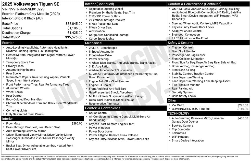 Purchased new 2025 volkswagen tiguan se nice ride good on gas drives just perfect 3000 miles no problems so far…